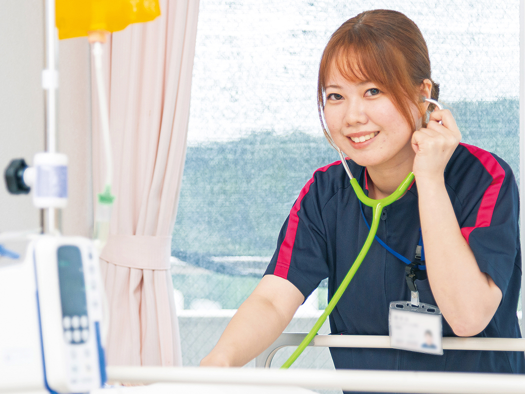 卒業後、慢性期医療を選択しました。入職したばかりの頃は、不安と緊張の毎日でしたが、周りの先輩方から業務の流れや患者様のケアの方法など1つ1つ丁寧に教えていただき、手厚いサポートを受けながら日々頑張っています。先輩方はみんな優しく、病棟の雰囲気も明るいので毎日楽しく働いています。患者様が安心して日々を過ごせるよう、寄り添った看護を心がけ学びながら成長していきたいと思います。